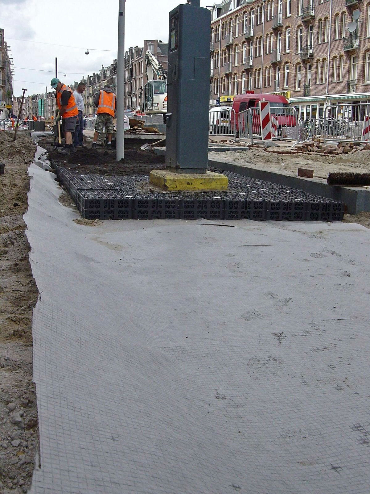 Bij toepassing van geotextiel moet dit over het hele werk worden aangebracht, met voldoende overlap. Het geotextiel moet goed worteldicht zijn.