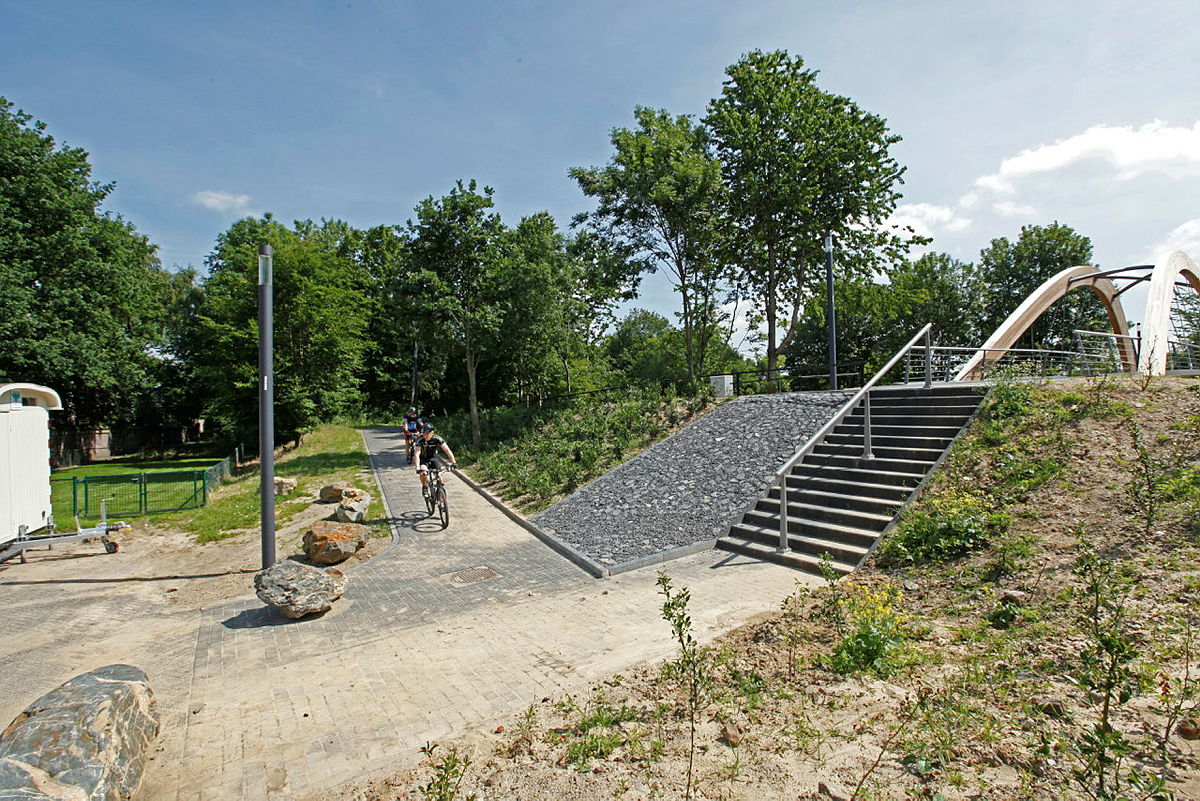 Figuur 5.16. Hellingbaan voor fietsers en trap voor voetgangers bij brug d'r Reëgeboag in Landgraaf