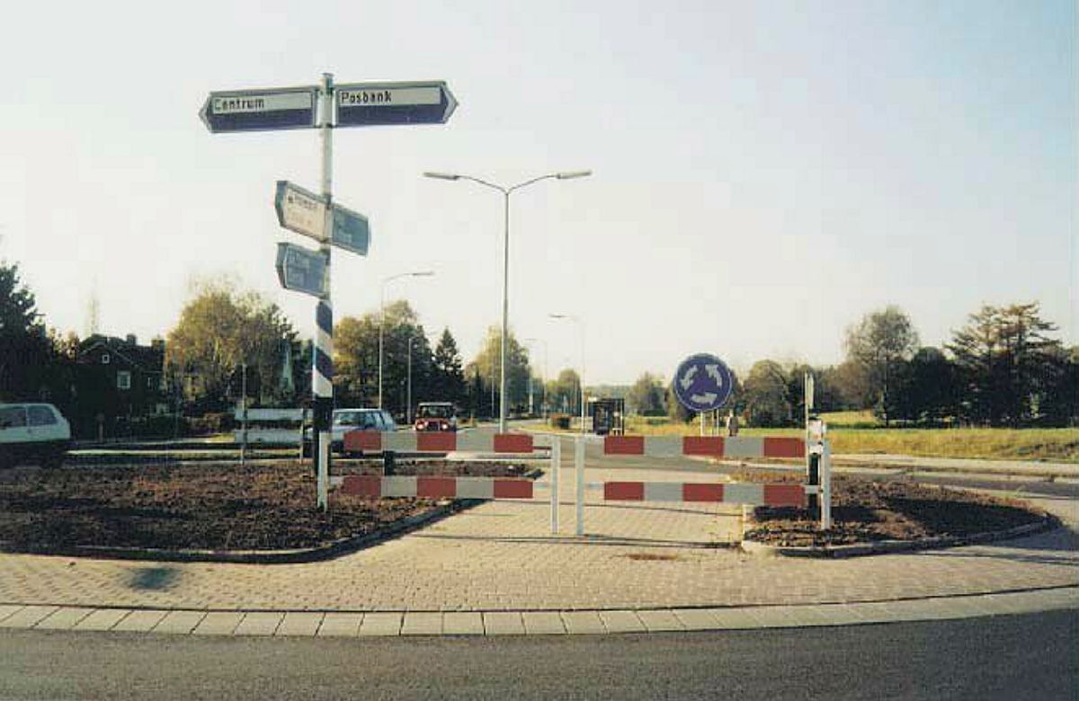 - Het overrijdbare deel van het middeneiland kan worden verbreed. Belangrijk is dat voor voertuigen bij het toerijden van de rotonde een barrière in het zicht blijft. Met name bij afslagbewegingen door exceptioneel transport is dit een goede oplossing.